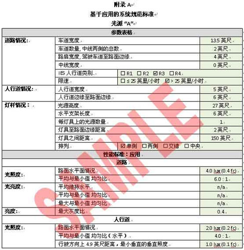 美国能源局(DOE)于2011年11月底发布LED路灯照明中的应用系统规范标准,下表仅为举例说明,比如最大输入瓦数选择应考虑是否满足节能标准;最大有效投影面积应该基于桅杆的负载能力等。