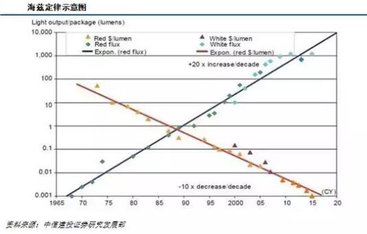 慧聪LED屏网报道 要点 周期与成长共振,LED应用持续渗透 从长周期维度来看,LED行业由海兹定律驱动成长。即每经过10年,LED输出流明则提升20倍,而LED的成本价格将降至现有的1/10。在海兹定律的驱动下,LED单芯片成本