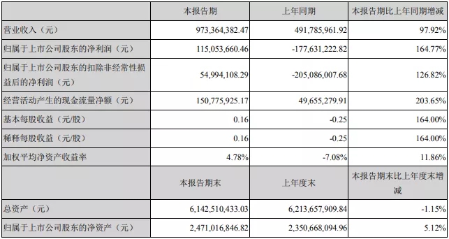 8月25日晚间,红黄光芯片龙头供应商乾照光电发布了2021年半年度报告。 财务数据显示,乾照光电2021年上半年实现营收为9.73亿元,同比增长97.92%;归母净利润1.15亿元,同比增长164.77%;经营活动产生的现金流量净额约