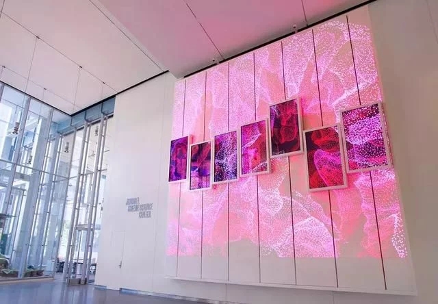 慧聪LED屏网报道 这件作品位于哥伦比亚大学曼哈顿维尔分校区杰罗姆·格林尼科学中心的大厅中。