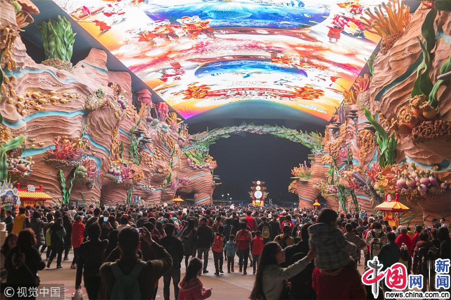 慧聪LED屏网报道 2018年1月26日,广东珠海,海洋大街上方的巨型弧面LED天幕总面积达1608平方米,为入园的游客带来颇为震撼的视觉体验,尤其在傍晚和夜间,绚丽多彩的显示效果令人叹为观止。