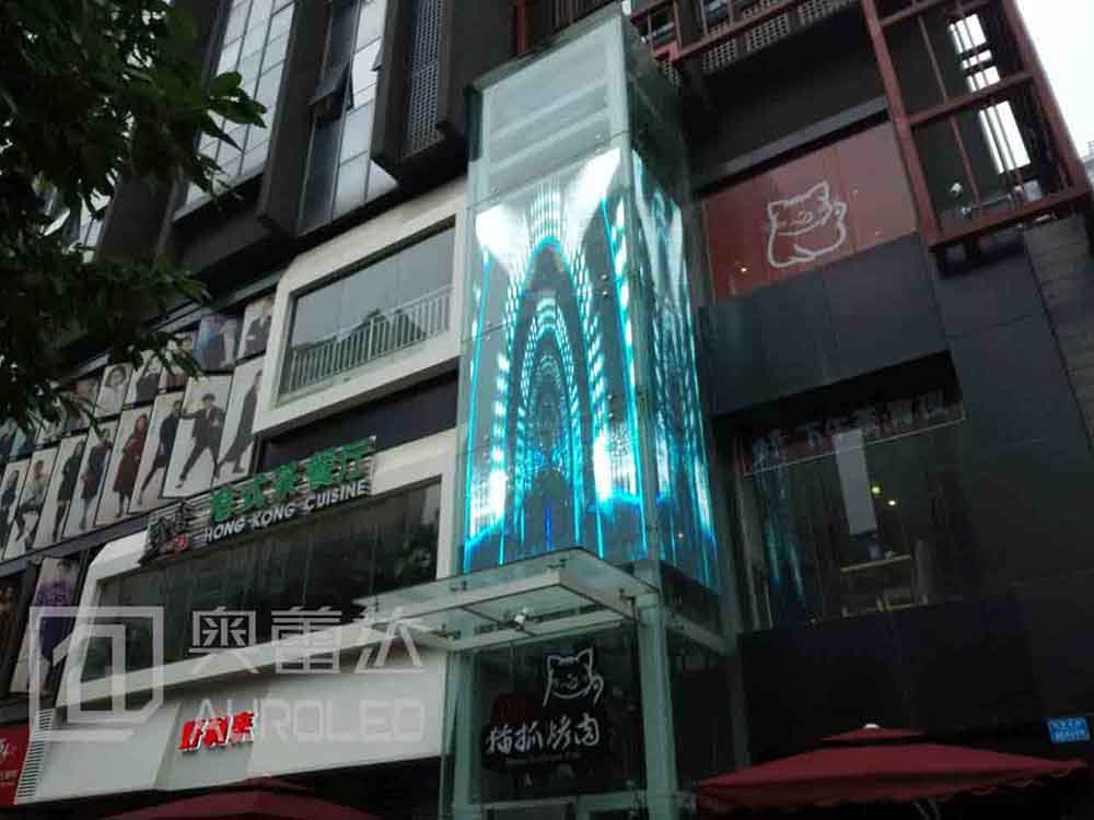 奥蕾达量身打造重庆观光电梯LED透明屏