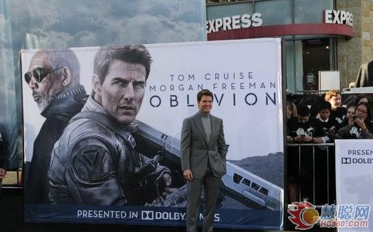 美国时间4月10日,好莱坞巨星汤姆克鲁斯(Tom Cruise)现身洛杉矶,出席于杜比剧院举行的新片《Oblivion》首映礼。现场好莱坞巨星云集,汤姆克鲁斯身穿铁灰色西装配同色高领毛衣示人,备受影迷欢迎。首映礼舞台背景使用
