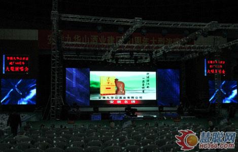 慧聪LED屏网12月5日报道 2012年11月26日晚,由中共池州市贵池区委、池州市贵池区人民政府举办,安徽九华山酒业有限公司承办的“九华山酒业建厂六十周年大型演唱会”在安徽省池州市体育馆隆重举行。陈慧琳,腾格尔,大