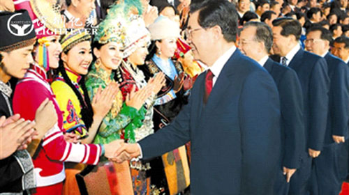 慧聪LED屏网8月17日报道 第四届全国少数民族文艺会演在北京国家体育馆隆重开幕。胡锦涛、温家宝、贾庆林、李长春等出席开幕式文艺晚会。出席观看晚会的领导同志还有:回良玉、刘淇、刘云山、刘延东、李源潮、乌云其木