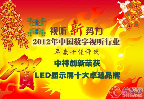 中祥获12年度中国数字视听行业LED显示屏十大品牌