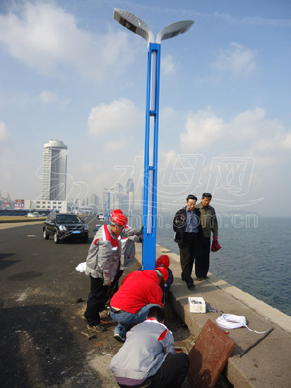烟台滨海路老路灯更新换代 升级为LED路灯