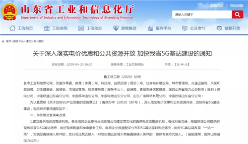 慧聪LED屏网报道 山东省工信厅等17部门日前联合发布《关于深入落实电价优惠和公共资源开放加快我省5G基站建设的通知》(以下简称“通知”)。《通知》明确鼓励各市、县(市、区)对新建并开通运行的基站进行补贴,加快路
