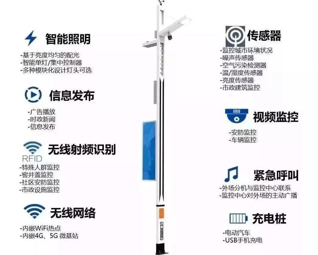 慧聪LED屏网报道 智慧灯杆具有诸多优势,以密布城市公路、街道、园区、社区等公共场所的市政路灯杆为核心,并结合物联网技术,搭载传感器、摄像头等各种数据采集设备及5G基站、显示屏、充电桩等便民服务设备。