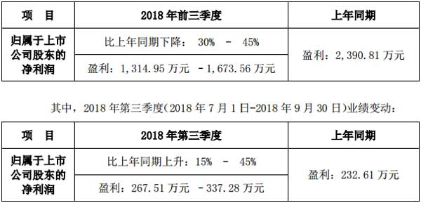 雷曼股份2018年前三季度业绩预告