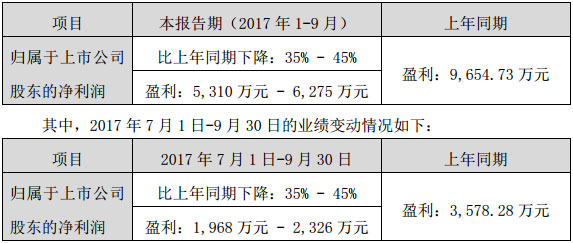 联建光电:2017年前三季度业绩预告