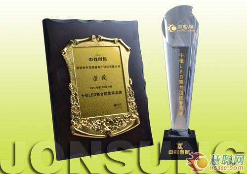 中祥创新荣获LED显示屏十佳品牌荣誉称号