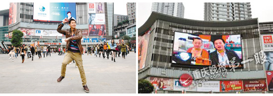 女友彻底懵了答应嫁给他 光棍节到了,为求“脱光”,25岁小伙欧文斌使出了杀手锏———组织30多位一起玩动漫的朋友,给21岁的女友跳骑马舞“江南style”,花1个月工资租下渝中区较场口日月光广场的LED大屏幕,播放60