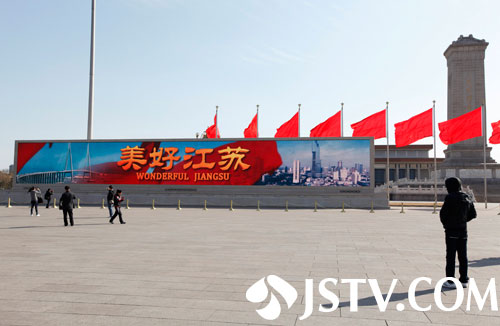 天安门广场LED显示屏播放《美好江苏》宣传片