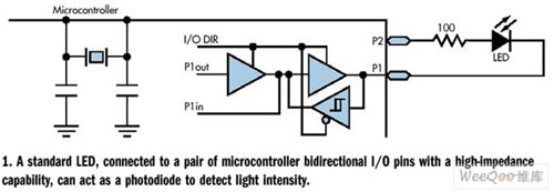 人们有时忘记了发光二极管也能够很好地检测光。发光二极管作为廉价而容易使用的光检测器而得到广泛的应用。一般来说,LED检测器检测的光的波长比其发射光的波长稍短,使其可用作波长选择检测器。例如,发射峰值波长约