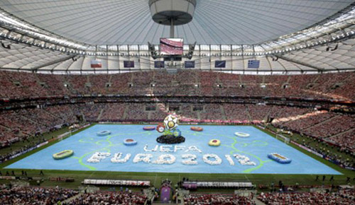 慧聪LED屏网报道 6月8日,三朵含苞待放的花朵托起了2012年欧洲杯的标志,来自63个国家的800多名志愿者生动演绎了生命的力量、足球的魅力,2012年欧洲杯也正式拉开了大幕。