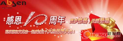 慧聪LED屏网8月15日报道 2011年9月18日,是深圳市艾比森光电股份有限公司成立10周年的日子。在此之际,艾比森公司为感谢广大客户朋友十年以来的支持和厚爱,于2011年8月1日正式启动“十年,感谢您一路同行”盛大感恩