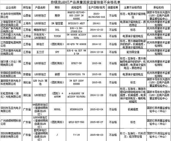 山东抽查:一批次“轩普”固定式LED灯具被检出不合格