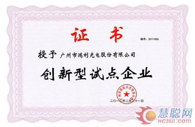 鸿利光电被认定为广州市创新型试点企业