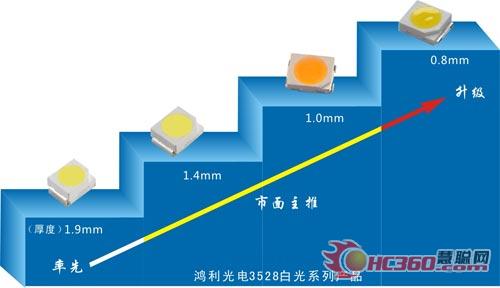 慧聪LED屏网3月19日报道 鸿利光电于近日推出新一代3528-080.7W扁平结构白光产品,是继公司推出1.4mm与1.0mm的3528之后第三代的优势白光光源。