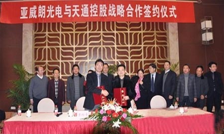 3月6日,天通控股股份有限公司与亚威朗光电(中国)有限公司在海盐杭州湾国际大酒店举行战略合作签约仪式。双方负责人在嘉兴市、海盐县有关领导及双方高管的共同见证下,签订了战略合作协议。