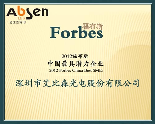 慧聪LED屏网2月6日报道 2012年1月4日,《福布斯》中文版在上海发布了2012年度首份榜单——“中国潜力企业榜”,中国LED光电领域领军企业——深圳市艾比森光电股份有限公司凭借着近几年的高速增长成功入选,成为唯一入
