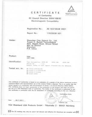 齐普光电PXT8日光灯通过德国莱茵TÜV认证