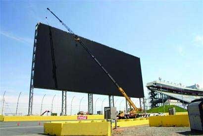 近日,全球最大高清电视在美国纳斯卡(全国赛车联合会)的Lowe’s赛道亮相。这块总面积接近1500平方米的HD LED,长约61米、宽24米。为建造这个庞然大物动用了超过50名工人,使用了近900万个LED灯,费时4个多月,重7500