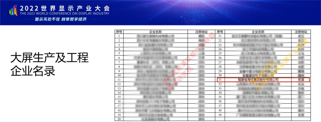 2022世界显示产业大会于12月1日成都举办,福建省海佳集团股份有限公司成功入选“百城千屏”第二批公共大屏接入候选名录及供应商企业名册!