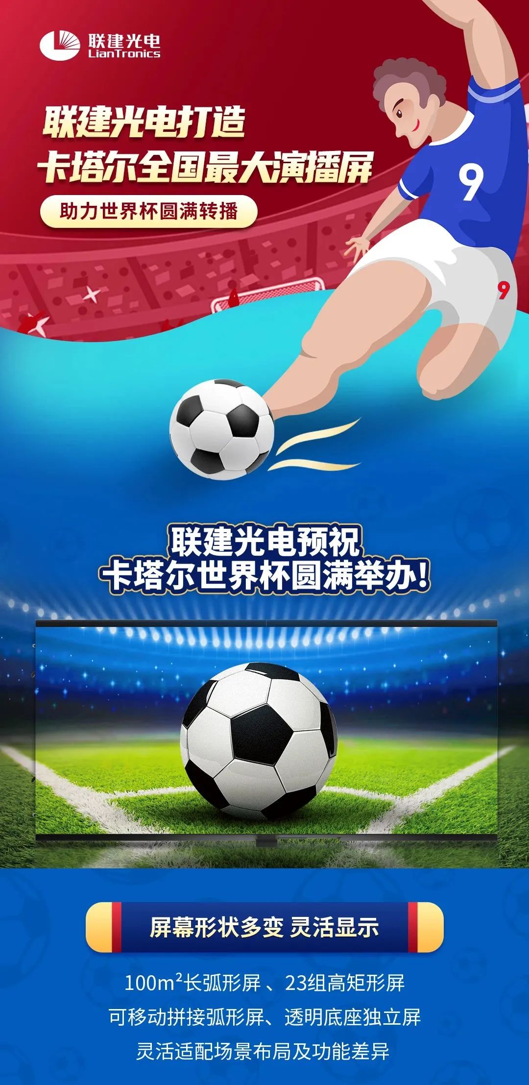 联建光电打造卡塔尔全国最大演播屏,预祝世界杯圆满举办