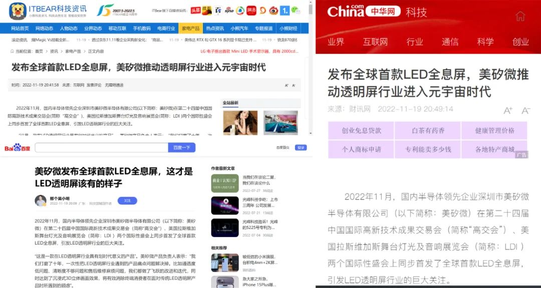 2022年11月,国内半导体领先企业深圳市美矽微半导体有限公司(以下简称:美矽微)在第二十四届中国国际高新技术成果交易会(简称“高交会”)、美国拉斯维加斯舞台灯光及音响展览会(简称:LDI )两个国际性盛会上同步首发了全球首款LED全息屏,引发LED透明屏行业的巨大关注。