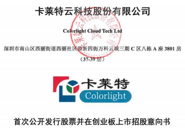 11月14日,卡莱特正式启动招股工作,计划登陆深交所创业板,或将成为A股首家视频图像显示控制行业上市企业。此前在10月,卡莱特首次公开发行股票并在创业板上市的注册申请获证监会同意。