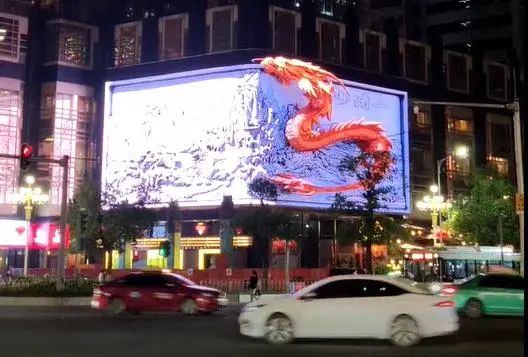 近日,广州南岳大厦巨幅直角广告屏上推出了一支裸眼3D广告,一条3D的巨龙在一幅传统的山河画上不停地游走,效果极其震撼,让经过的市民和游客经忍不住驻足欣赏。而这块巨幅直角广告屏正是由具有多年户外商显经验的奥拓电子近期精心打造的。