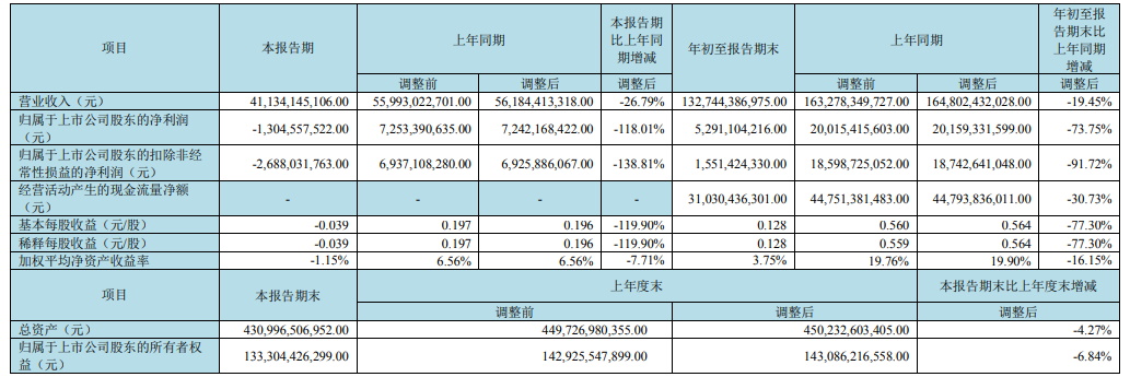 10月30日,京东方科技集团股份有限公司(京东方A:000725;京东方B:200725)发布2022年第三季度报告,前三季度公司实现营业收入1327.44亿元,实现归属于上市公司股东净利润52.91亿元。
