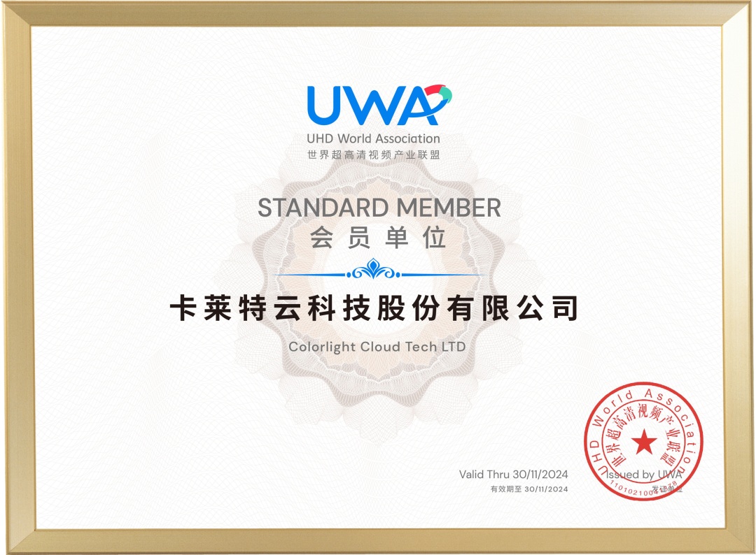 近日,作为深耕视频图像显示控制领域的头部企业之一,卡莱特凭借先进的技术、全面综合的解决方案,当选世界超高清视频产业联盟会员单位,获得联盟的高度认可。