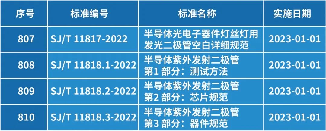 近日,中华人民共和国工业和信息化部公告(2022年 第23号)批准发布了1036项行业标准,其中包括鸿利智汇集团股份有限公司牵头制定的行业标准一项(序号810)和参与制定的行业标准三项(序号807/808/809)。