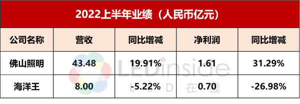 近日,佛山照明、海洋王发布上半年业绩,其中,佛山照明营利双增,海洋王营利双下滑。
