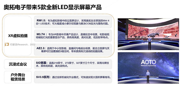 5月9日,奥拓电子举行了2022年线上新品发布会,针对XR虚拟拍摄、沉浸式会议、户外舞台租赁场景的发展,带来了5款全新LED显示屏幕产品。