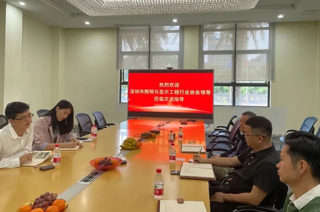 4月18日,深圳市照明与显示工程行业协会秘书长赵飞、经理葛行艳莅临我司交流访问,迈锐光电董事长赖荣先生、常务副总石建功先生等公司领导热情接待。