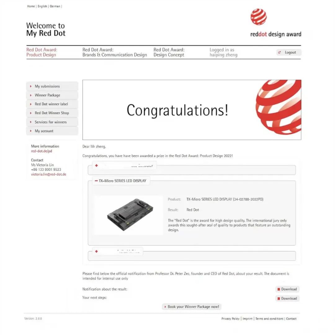 近日,2022年德国红点设计大奖名单公布。利亚德集团TX-Micro系列LED显示屏、TVS系列小间距LED、HKS LED显示屏三款产品同时斩获素有设计界“奥斯卡”之称的红点设计奖。