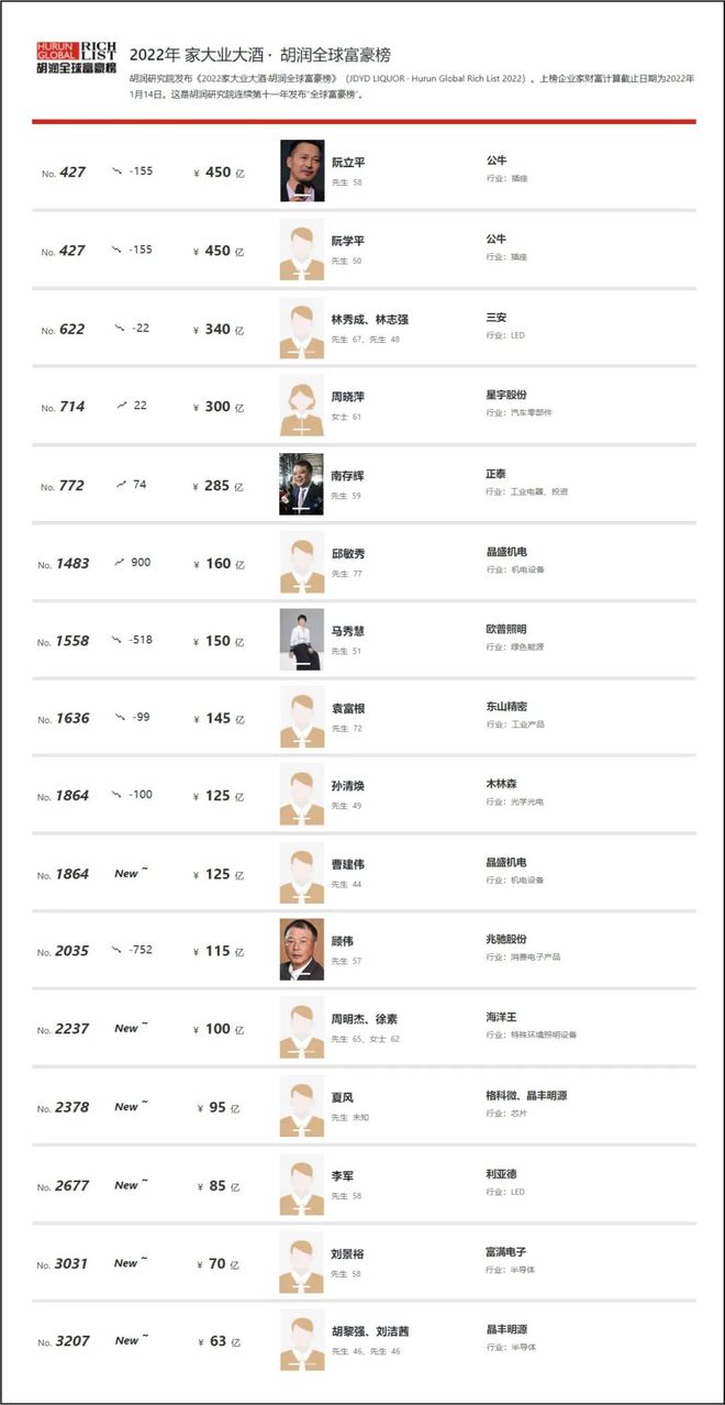 胡润全球富豪榜发布!LED照明电工行业“第一富”,又是他?!