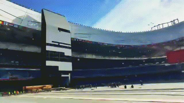 2月5日晚 伴随着中国队冬奥首金的诞生利亚德铁军再创奇迹150人仅用22小时连续不休、高空作业安全无损地拆除高60米总面积2000平方米总重量30吨的冰瀑屏为冬奥会闭幕式准备争取了宝贵的时间