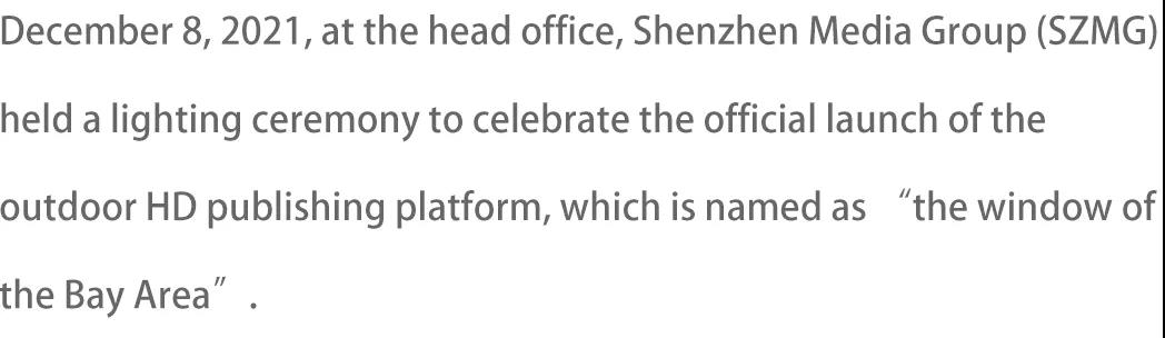 12月8日,“湾区之窗”点亮未来——深圳广播电影电视集团户外高清信息发布平台点亮仪式,在深圳广电大厦隆重举行。