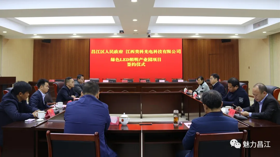11月30日上午,昌江区人民政府和江西美科光电科技有限公司绿色LED照明产业园项目签约仪式举行。昌江区委书记倪卫春,区委副书记江智峰,区委常委、统战部部长周薇,副区长聂刚,江西美科光电科技有限公司董事长余钢出席签约仪式。江智峰主持仪式。