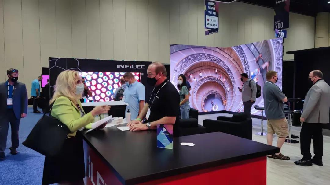 10月29日,2021年美国国际视听展Infocomm展会正式落下帷幕。10月27日至29日开展期间,视爵光旭在展位801展出旗下明星产品,三面视频墙由WP超薄壁挂系列,DB深黑系列,AR系列分别搭建而成的,画面显示高清,色彩鲜艳,视觉冲击力强烈,引得一众参观者驻足观看,与现场工作人员热情商谈。