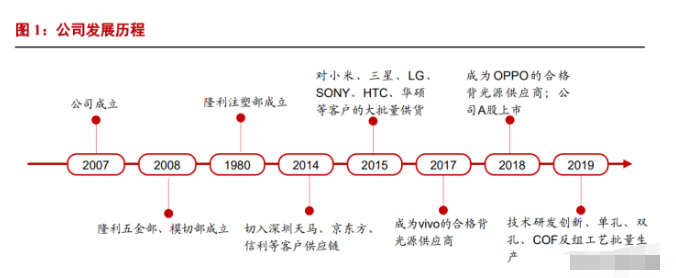 1. 国内手机背光模组龙头,Mini LED 成就第二成长曲线 国内手机背光模组领先企业。公司一家专业从事 LED/CCFL 背光源研发、生产和销售的 高科技企业,一直专注于背光显示模组的研发和生产,依托自主知识产权的核心技