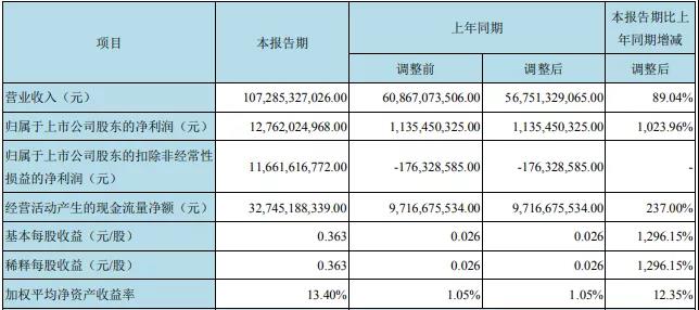 京东方自2020年底开启的又一轮业绩暴增趋势,已经愈发猛烈。 8月30日晚间,京东方发布的2021年半年度报告显示,公司上半年实现营收为1072.85亿元,同比增长89.04%;归母净利润127.62亿元,同比暴增1023.96%;扣非后归