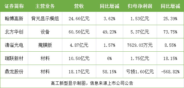 截至4月12日,翰博高新、北方华创、清溢光电、瑞联新材、鼎龙股份等5家企业最新发布了2020年年度报告/业绩快报。具体情况如下: