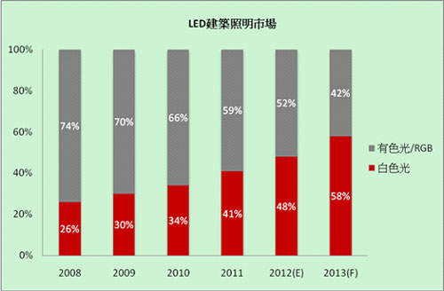 集邦科技(TrendForce)旗下研究机构LEDinside表示,欧洲LED照明市场未来五年复合成长率达38%,是继日本之后下一个快速成长的成熟市场,其中建筑照明和商用照明应用因消费者对价格敏感度较低,对LED照明接受度较高,普