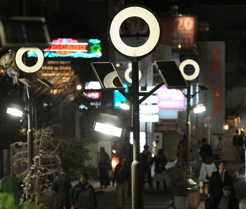 4月2日,在日本东京表参道,混合型LED路灯照亮街头。自去年3·11大地震后,日本官方为解决电力供应不足问题,采取了多种节电措施。